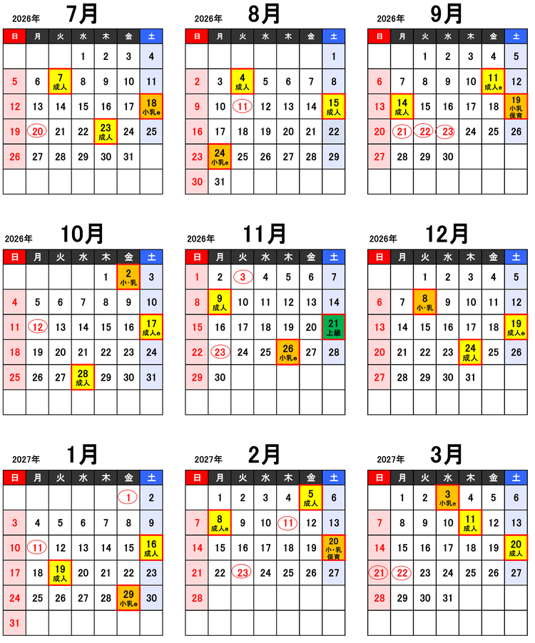 小児・乳児に対する応急手当 | 午前9時から正午 | 25名 | なし | 小・乳 |