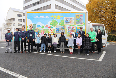 ラッピングトラックに使用されたポスターを制作していただいた児童と保護者の方々を招待し、令和7年12月24日(水曜日)に完成報告会を実施しました。